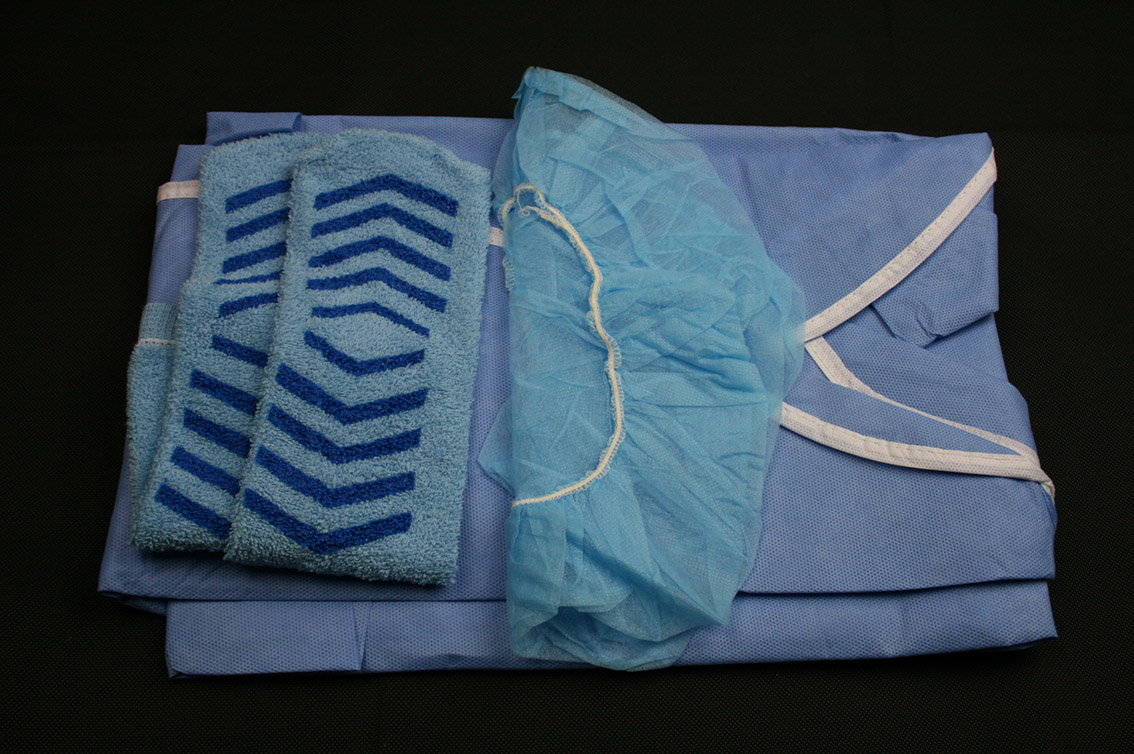 Contenuto: 1 Camice Paziente taglia universale non sterile alcool repellente e antistatico 1 Paio di calzini antiscivolo blu 1 Cuffia con elastico latex free Camice ideale per il comfort del paziente e la sua privacy. confezione da 20 pezzi .